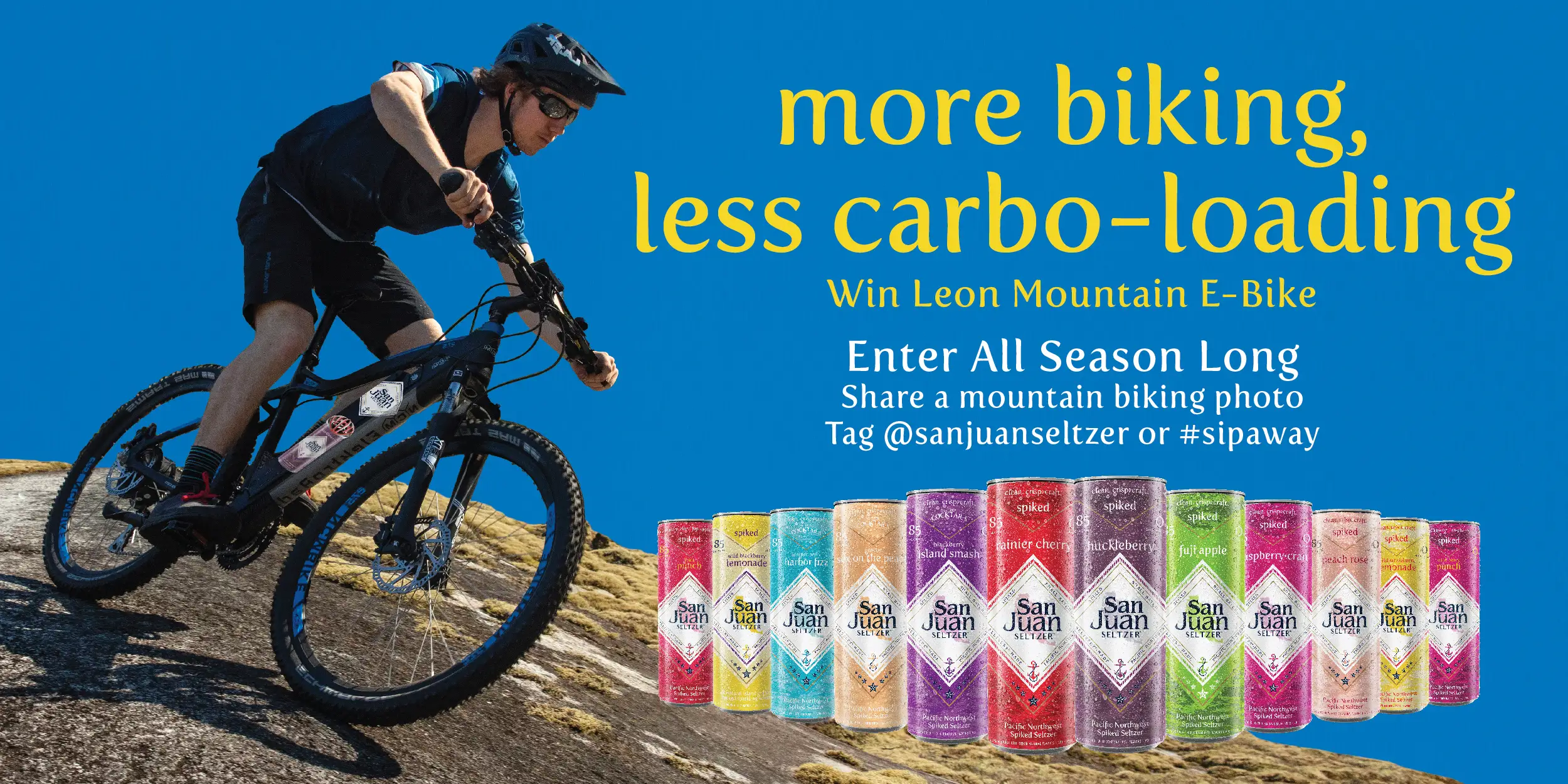 Social Media Entry: Entrants may post as many times as they would like to enter for additional entries during the open entry period. Post a picture of your spring activities and/or biking/cycling activities on Facebook, Instagram or Twitter and tag @sanjuanseltzer and add #sipaway and #sweepstakes hashtags. This can be a photo of you, you and your friends, you and family enjoying all things and activities related to your favorite way to be active during the spring. Entries must be submitted and posted on your Instagram grid, story, Facebook timeline, or Twitter timeline. This Sweepstakes is in no way sponsored, endorsed or administered by, or associated with Twitter, Instagram, or Facebook. Any questions, comments or complaints regarding this Sweepstakes shall be directed to Sponsor and not to Twitter, Instagram, or Facebook. By entering you agree to these Official Rules.